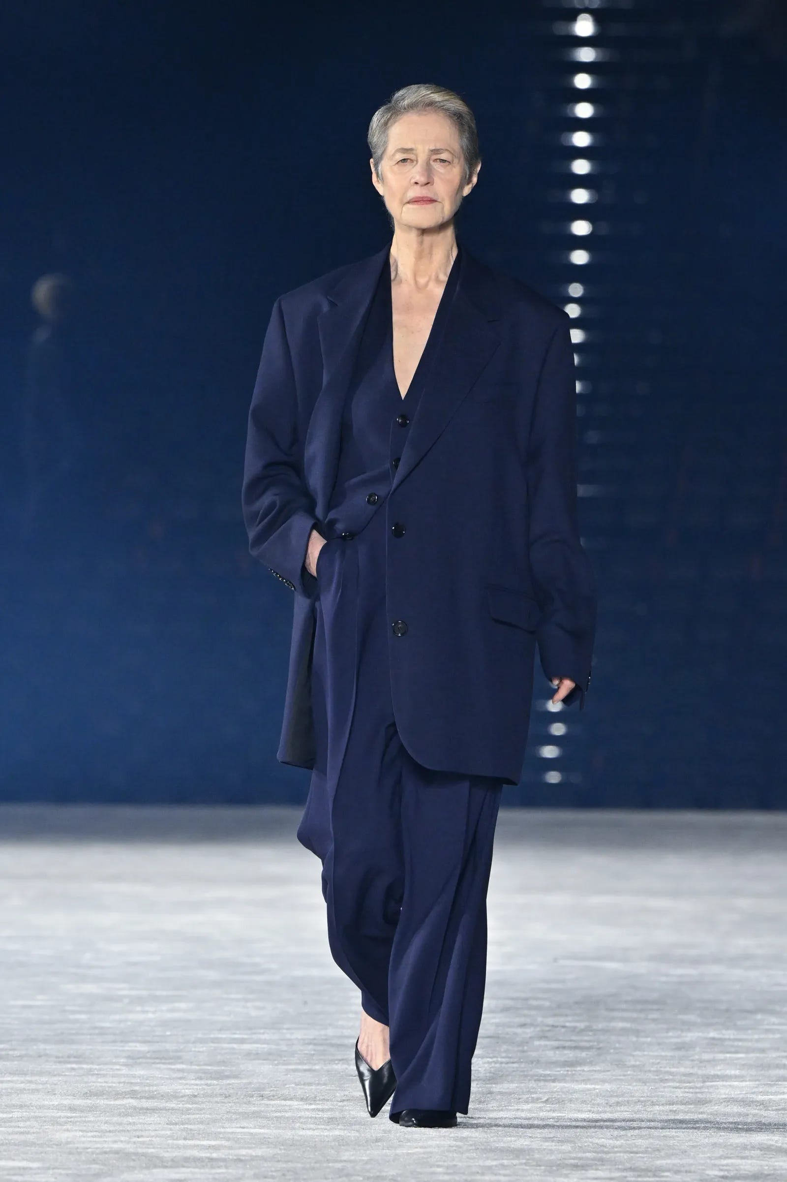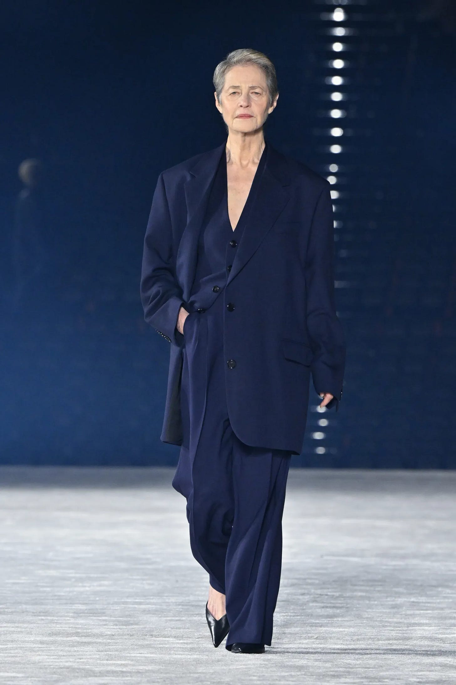 (Above: Charlotte Rampling walking the runway at the AMI show in Paris during the recent men's fashion week. Photo by Peter White/Getty Images.)