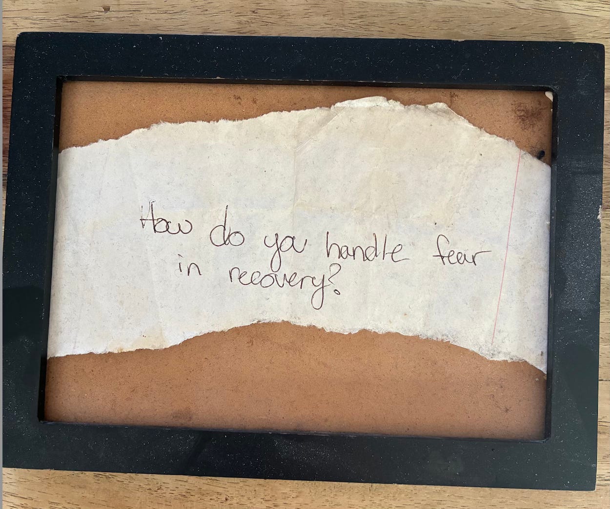 One of the other things like that is this question. I had been invited to a Young Hope Young People’s Meeting at a church on Green Street back when I lived in Hudson and the format that night was to write down a question and put it in the hat which would be passed around. You were then to draw a question from it and speak to that. I drew this question. Instead of leaving the scrap of paper behind, I brought it back to my loft, framed it, and put it by my bed there. It’s been by all these beds of mine ever since. I’m still not sure of the answer but I am sure that part of it is to keep the question close.