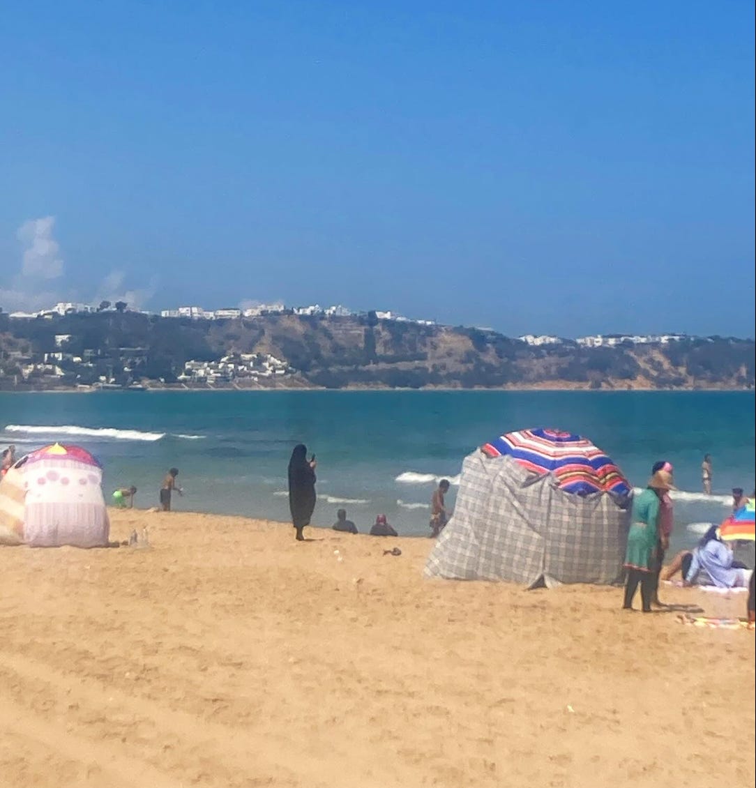 One of the men who had dragged him from the sea - a son or a nephew or a brother or a friend - started yelling at the circle of Tunisians and Arab tourists who had been watching it all . “Go! Go! Go!” she shouted in anger, “Go away! Please! Go!” He shooed them as if they were a herd of stubborn goats. A woman in a hijab and abaya soaked with the Mediterranean raised her arms and hands to the blue startled sky and wailed in a voice that floated up and over the water. I assumed she was mentioning the God to whom she motioned but no longer beckoned. She and the man bellowed back and forth, each an errant echo of the other. The sea’s silence itself echoed the body it just gave back.
